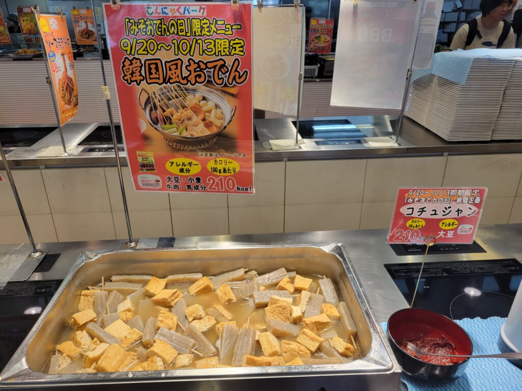長年のロングセラー商品で、バイキングコーナーでも人気が高い「月のうさぎ田楽みそおでん」の串付きこんにゃくを使用した