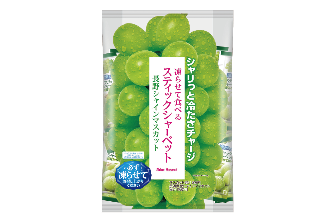 長野県産シャインマスカット果汁を使用したスティックシャーベットです。