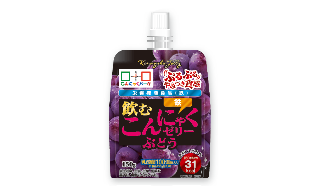 プルっとした食感の蒟蒻ゼリーぶどう味です。鉄と葉酸が入った栄養機能食品です。
