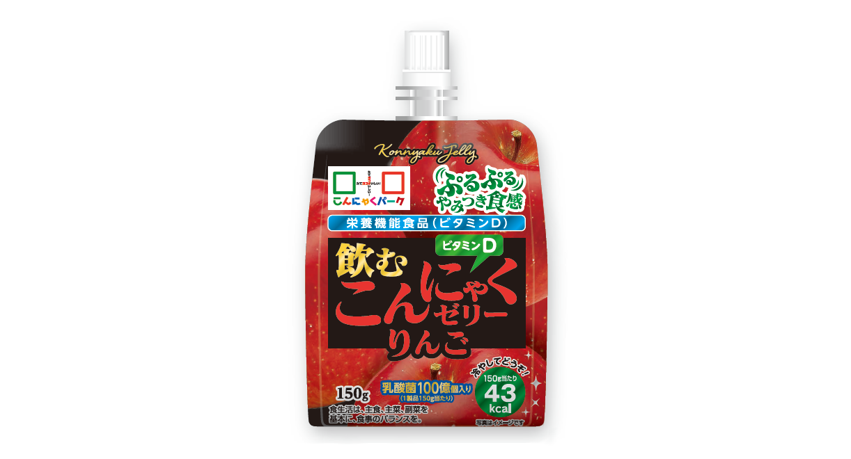 プルっとした食感の蒟蒻ゼリーりんご味です。ビタミンDとカルシウムが入った栄養機能食品です。